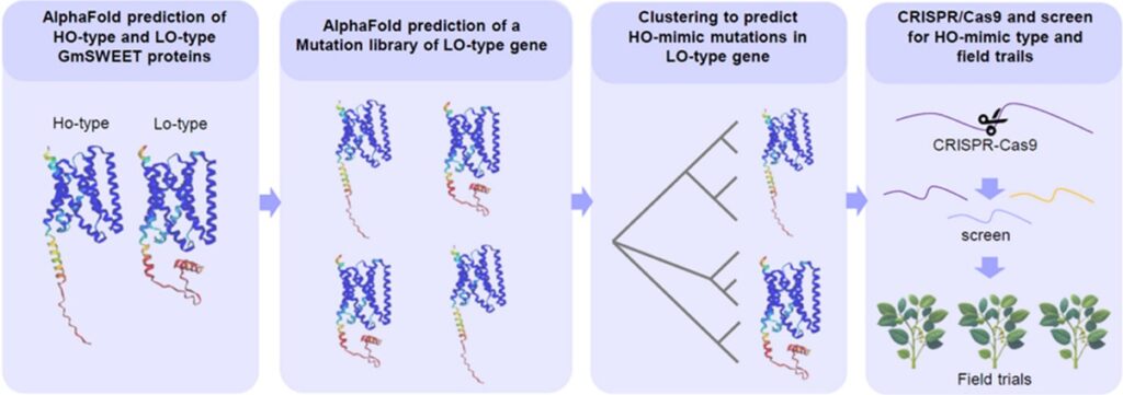 Breakthrough technology AlphaFold could help scientists revolutionize crop breeding through precision gene editing. A team collaborating across China and the US utilized the AI program AlphaFold’s protein structure predictions to guide CRISPR–Cas9-based gene editing of two soybean sugar transporter genes, GmSWEET10a and GmSWEET10b.