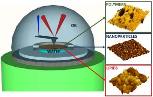 To address these limitations, a group working across France and the UK has figured out a way to image soft and dynamic liquid interfaces using AFM, without requiring any solid supports. They achieve this through the formation of stabilizing layers of either a block copolymer (polystyrene-block-poly(methyl-methacrylate)), lipids (1,2-dioleoyl-sn-glycero-3-phosphoethanolamine), or silica nanoparticle monolayers at the interface.