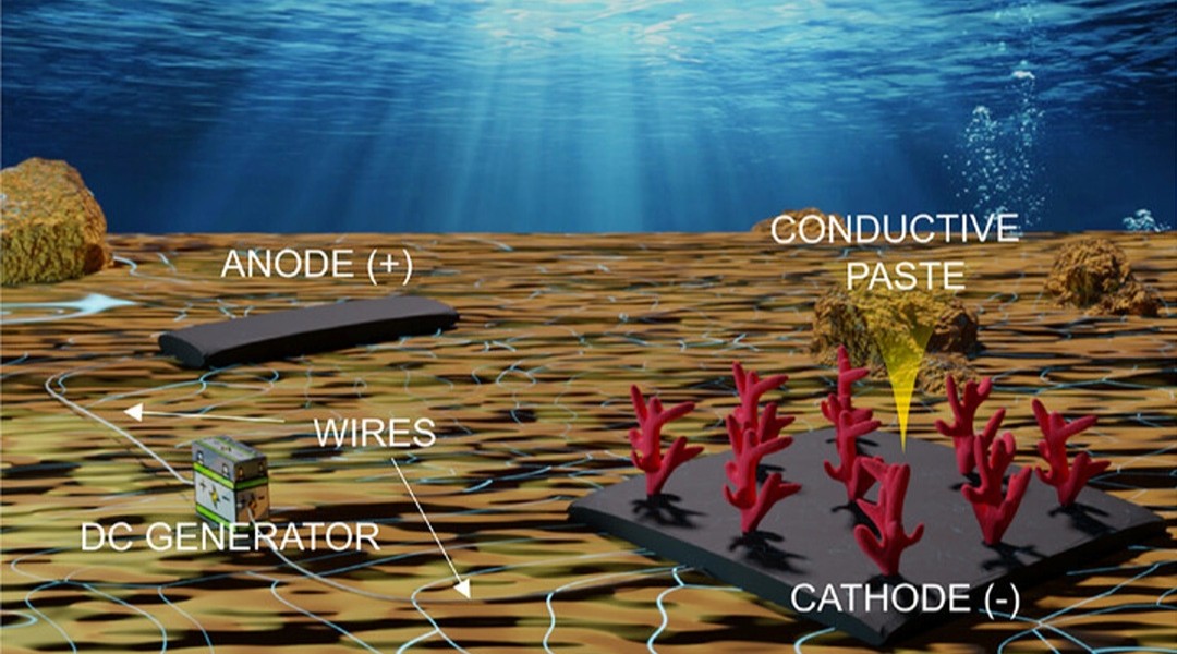 Moreover, accelerating coral growth has remained a major hurdle in this approach due to their inherently slow calcification rates. In contrast, Mineral Accretion Technology (MAT) has emerged as a promising technique which stimulates coral growth using low-voltage electric currents that encourage calcium carbonate deposition. But traditional MAT systems rely on large metal frames and continuous power, which are difficult to maintain and can cause pollution if they corrode.