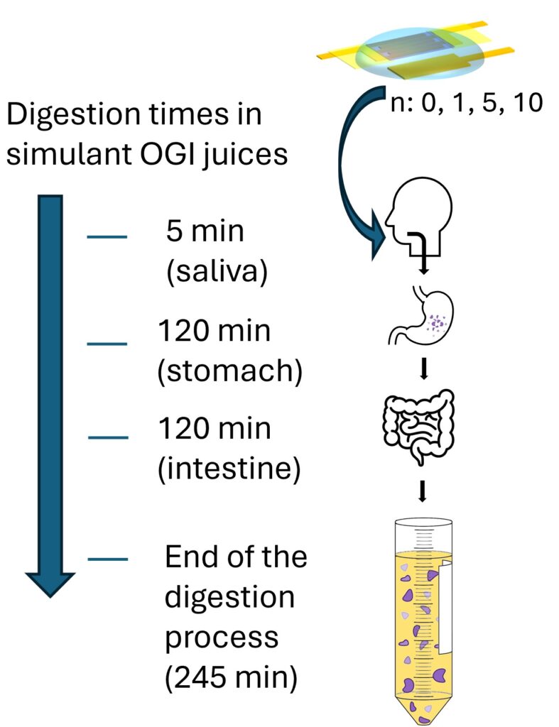 All materials are present in quantities significantly below toxicity thresholds; however, the frequency and dosage of device ingestion should be carefully determined to ensure digestibility. Preliminary studies utilizing simulated oro-gastrointestinal conditions and examining digestion products indicate no observable alterations to the intestinal cell epithelium.