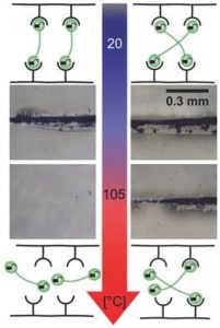 scratches or cracks. In polymer coatings, heating can induce a chemical reaction that leads to a homogeneous flow of the protective layer and thus enables complete mending. The healed polymer re-hardens upon cooling and adopts its original robust structure as well as its earlier mechanical properties. However, the relatively high temperatures required for healing can lead to stepwise degradation of the material when applied repeatedly. To circumvent this drawback, a team of researchers at the Humboldt-University in Berlin recently developed a prototype of a smart, light-controllable polymer coating that enables thermal healing only in defined damaged locations without affecting the non-damaged parts. Light serves as a true remote control to switch the ability to repair ‘on’ or ‘off’ on demand.