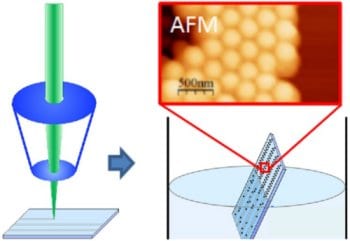 Researchers from Chemnitz University of Technology, Germany and Linköping University, Sweden, have now developed an approach to obtain colloidal crystal films from polystyrene nanoparticles (diameter 260 nm) as a model system in narrow structured molecular monolayers that are photochemically patterned. Using a laser-direct-write photothermal decomposition of the molecular monolayers, they suggest a slope-self-assembly process to deposit colloidal polymer nanoparticles from an aqueous dispersion within the hydrophilic regions of the alkyl-desorbed lines. This approach yields highly ordered colloidal nanoparticle stripes a widths of only 1.5 µm which is below 10 µm as reported previously.